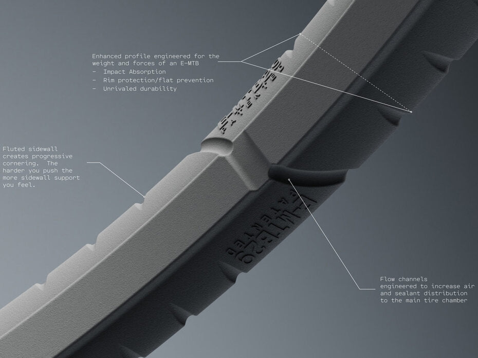 Absorbs big hits, prevents rim damage and withstands repeated impacts without degrading. The patented profile reduces pinch flats.