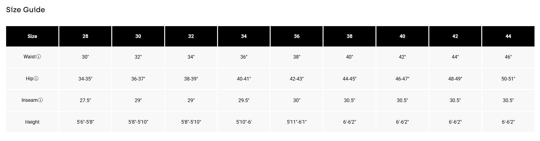 INSEAM: 31.5"