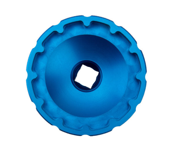 A precision CNC-machined aluminum tool for the installation and removal of select threaded bottom brackets with 12-notch tool fittings, including Chris King® ThreadFit™ T47 & ThreadFit™ 30 bottom brackets. Manufactured in-house by Park Tool, anodized for easy identification and featuring a ratchet/torque wrench-compatible 3/8" drive.