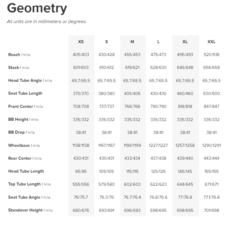 - We mimicked our longer travel geometry to create a bike with a 65.5-degree head-angle, generous front center, and short offset fork.