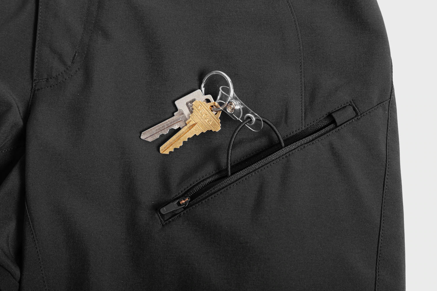 - Front and back zippered pockets + 1 with key cord
